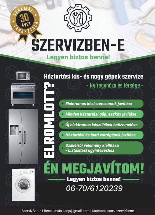 Sok éves szervizelési tapasztalattal vállalom meghibásodott kis- és nagy háztartási gépek javítását és szervizelését, valamint új elektromos készülékek beüzemelését minden márkában Nyíregyházán és térségében.